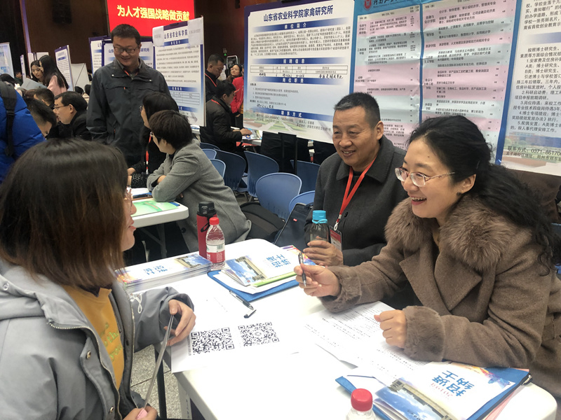 招聘会上,我校参会人员主动向应聘者发放人才引进宣传手册,热情地向参加招聘人员介绍了我校的基本情况,学科建设及高层次人才引进的相关政策、待遇和人才招聘计划,详细了解应聘人员的专业情况和职业发展需求,并真诚邀请博士们前来我校实地考察、参加应聘。我校展位吸引了大批博士前来咨询,吴静处长和李光院长细致地为应聘者进行问题解答和政策解读,使应聘者深刻了解我校人才引进、工作待遇和发展方向,并与应聘者进行了深入交流。期间,吴静处长与西北农林大学人事处的领导进行了对口交流。李光院长与西北农林大学经贸学院的进行了对口交流,并与负责研究生就业的老师建立了联系,在研究生微信群发布我校博士招聘信息。