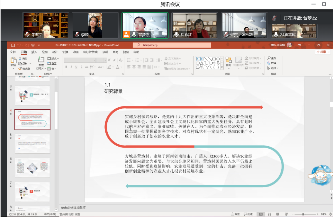 2022年11月19日,taptap点点体育2023届农林经济管理专业按照《taptap点点体育2023届本科毕业论文开题答辩实施方案》的要求,进行了开题答辩,由于疫情原因,答辩采取线上形式举行,共分为3个答辩小组,91名同学参加了开题答辩。