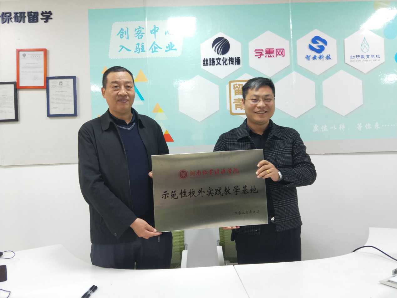 2020年11月11日上午,经济与贸易院长李光教授代表学校在英才校区教学办公楼325,为taptap点点官网校企合作企业河南澳得电子商务有限公司举行河南牧业经济学院示范性校外实践教学基地授牌仪式。河南澳得电子商务有限公司董事长杨高飞、人力资源经理、办公室主任及taptap点点体育党委书记张松刚、副院长杜玲、跨境电商教研室主任王建植等参加了授牌仪式。