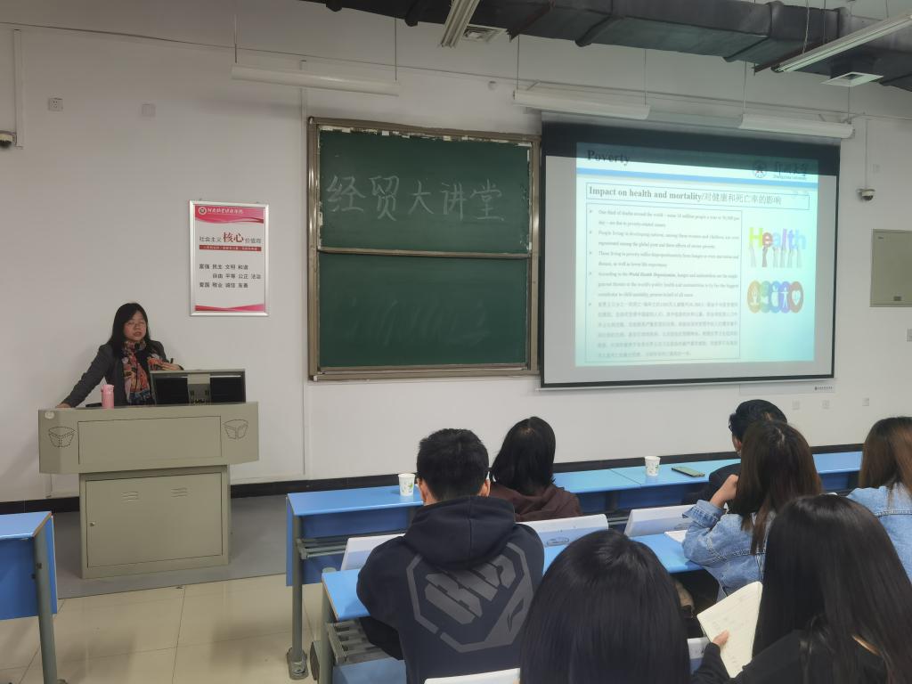 王芳博士首先以自己申请联合国粮食及农业组织工作的完整流程为切入点,向同学们介绍了自己在联合国粮农组织工作的基本情况;随后,王芳老师从联合国粮农组织架构、联合国可持续发展目标、相关领域研究热点等几个方面进行讲解;最后,王芳老师结合自身实践经验和国内外研究成果对贫困的相关理论知识及研究现状进行了详细的介绍。讲座图文并茂,生动有趣,现场掌声不断。