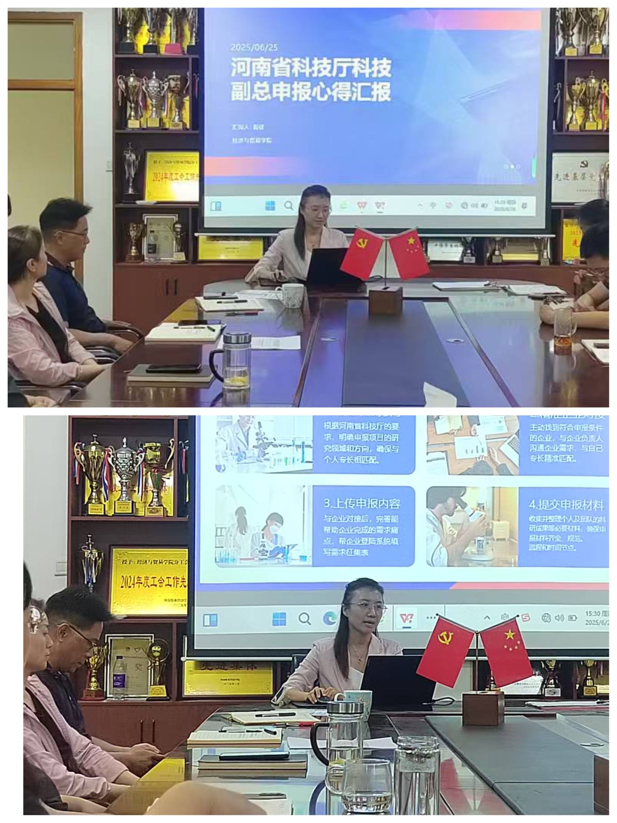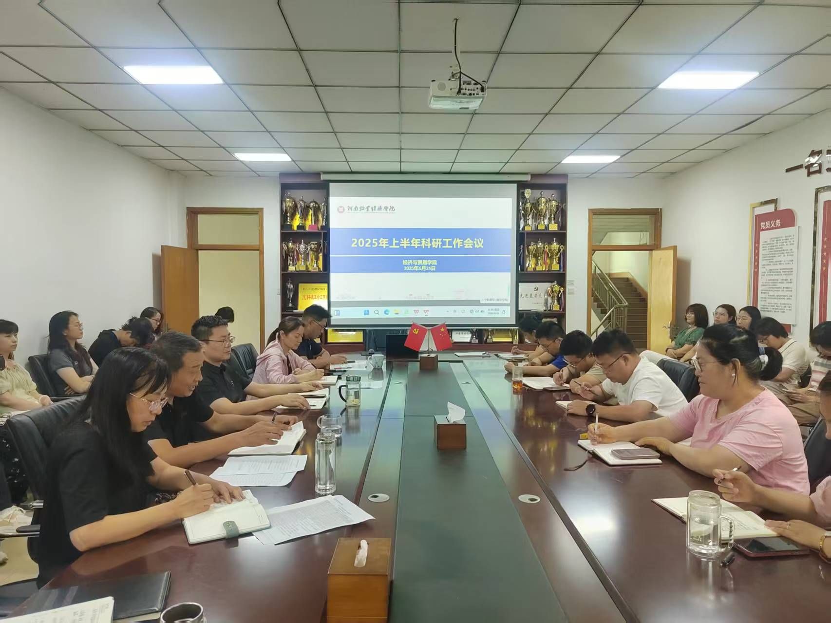 6月26日下午,经济与贸易学院2025年上半年科研工作会议在英才校区327会议室隆重举行。学院领导班子成员、全体教师参加会议。会议由taptap点点官网副院长杜玲主持,全面总结了学院上半年科研工作成效,部署了下半年重点任务,并邀请taptap点点官网农经教研室教师苗欣分享了科研副总申报的宝贵经验。
