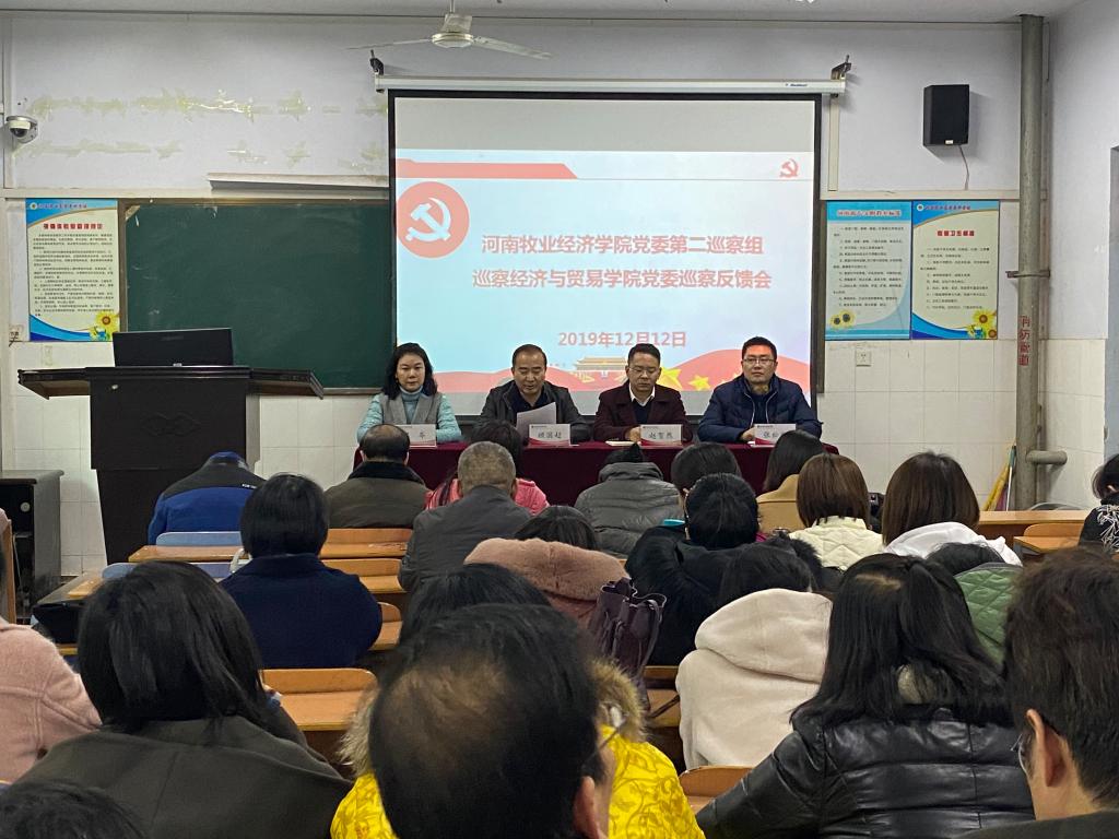 按照校党委巡察工作部署,2019年12月12日下午,校党委第二巡察组巡察taptap点点体育巡察反馈会在英才校区教学楼A102室召开。学校第二巡察组组长顾国超、副组长赵贺然、成员梁芩、狄波出席会议,经贸学院领导班子成员及学院全体教师参加会议,会议由经贸学院党委书记张松刚主持。
