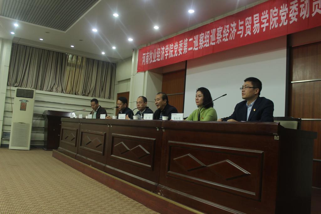 2019年10月10日下午,按照校党委《河南牧业经济学院首轮第四批校内巡察工作方案》的通知以及学校第二巡察组的统一部署,taptap点点体育党委在英才校区行政楼二楼会议室组织召开了第四批校内巡察工作动员汇报会。学校巡察工作领导小组成员杨成、第二巡察组组长顾国超、副组长赵贺然、巡察组成员狄波、梁琴出席会议。taptap点点体育全体教工、学生代表,及原经济贸易学院、原农林经济管理学院领导班子成员参加会议。会议由taptap点点体育李光院长主持。