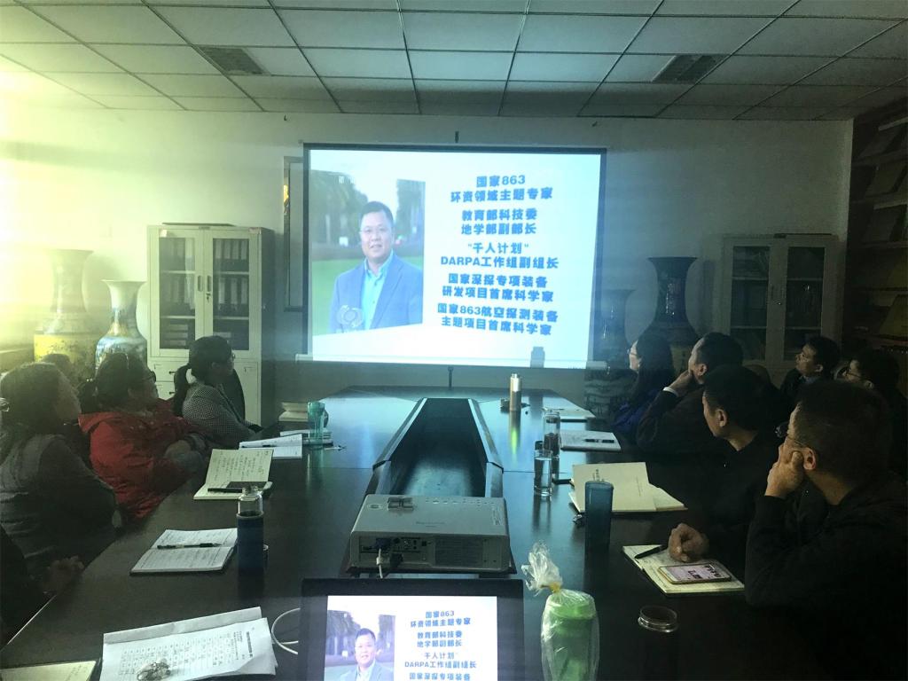 学院党支部书记牛建绥带领大家回顾了黄大年同志的生平事迹。全文传达了习近平总书记对黄大年同志先进事迹的重要指示和中组部、中宣部、教育部党组关于认真贯彻习近平总书记重要指示广泛开展向黄大年同志学习活动的通知。牛书记号召每一位党员都要以黄大年同志为楷模,学习他心有大我、至诚报国的爱国情怀,学习他教书育人、敢为人先的敬业精神,学习他淡泊名利、甘于奉献的高尚情操,把爱国之情、报国之志融入祖国改革发展的伟大事业之中、融入人民创造历史的伟大奋斗之中,从自己做起,从本职岗位做起,为实现“两个一百年”奋斗目标、实现中华民族伟大复兴的中国梦贡献智慧和力量。随后大家认真观看了中央电视台焦点访谈栏目,题为《以身许国叩开地球之门》的黄大年同志先进事迹专题报道。黄大年同志秉持科技报国的理想,把为祖国富强、民族振兴、人民幸福而贡献个人力量作为毕生追求,一生为国家科研事业做出的贡献、为自己学生付出的心血深深感动着在场的每一位教职工。