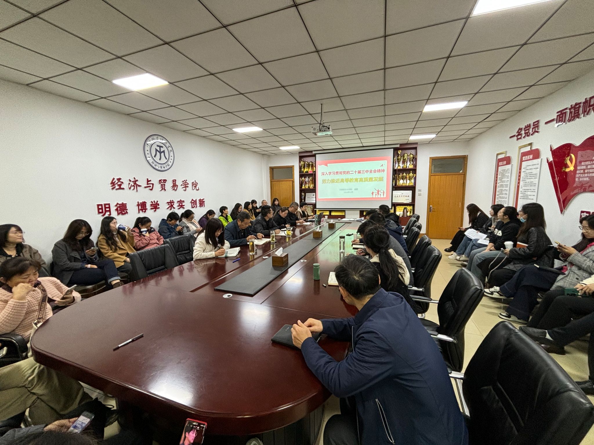近日,taptap点点体育在英才校区教学楼327会议室举行学习贯彻党的二十届三中全会精神专题报告会,特邀学校马克思主义学院副院长郭霞作题为《深入学习贯彻党的二十届三中全会精神,努力推进高等教育高质量发展》的专题报告,学院全体教职工参会。报告会由院党委书记张松刚主持。