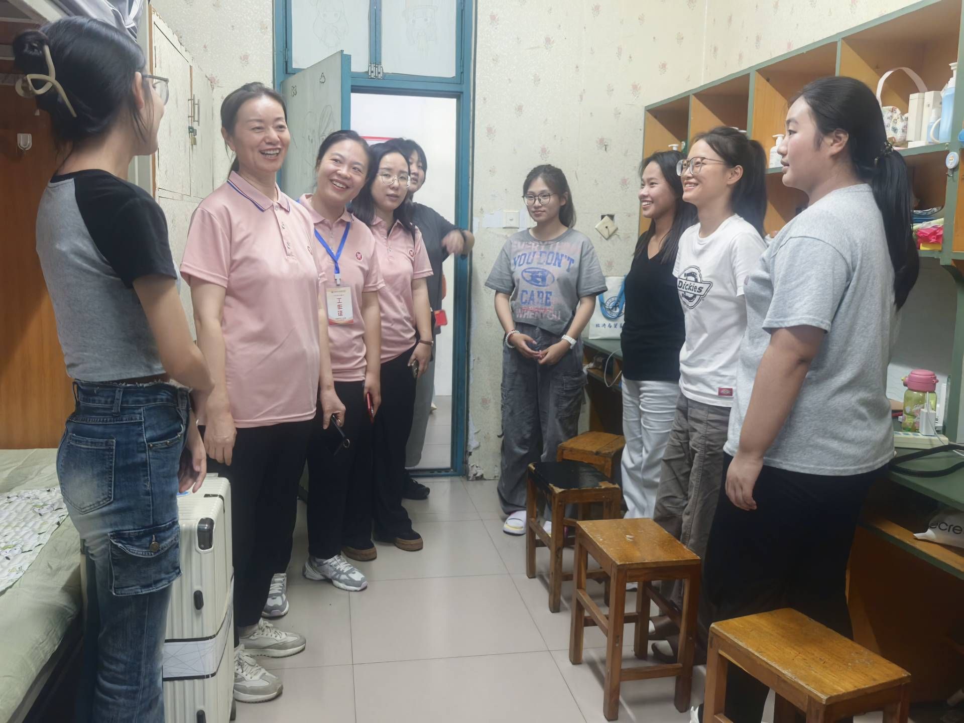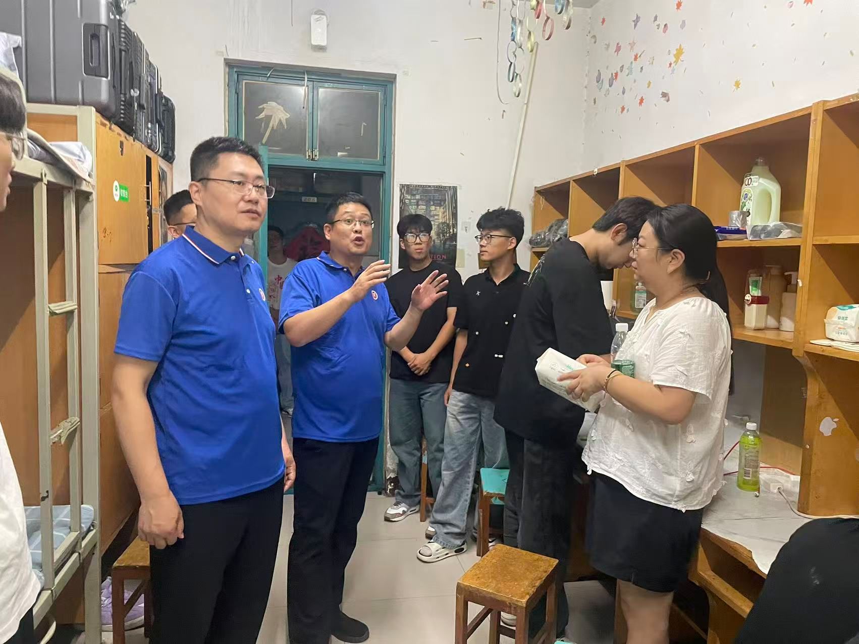 为全面掌握 2025 级新生到校动态,助力新生快速融入校园生活,9 月 13 日下午,taptap点点官网党委书记张松刚、院党委副书记贾艳艳、杜院长杜玲带队,团委书记(学工办主任)刘佳楠、团委副书记(学工办副主任)李政及全体辅导员、班主任,分赴男、女新生宿舍区开展走访慰问活动,为初入校园的新生们送去贴心关怀。